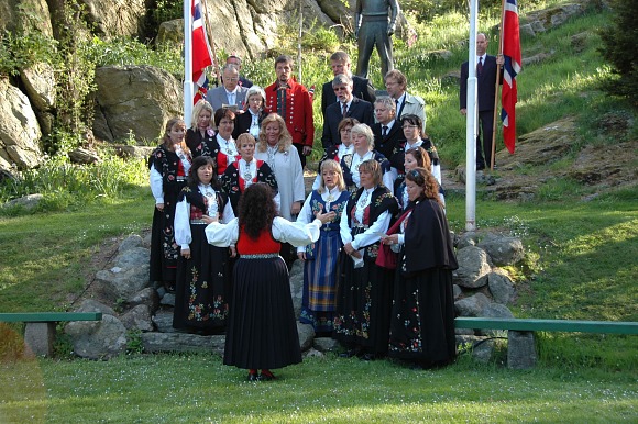 Skudenes Blandakor ar alltid med og synger ved bekransning av minnesmerket i Parken.